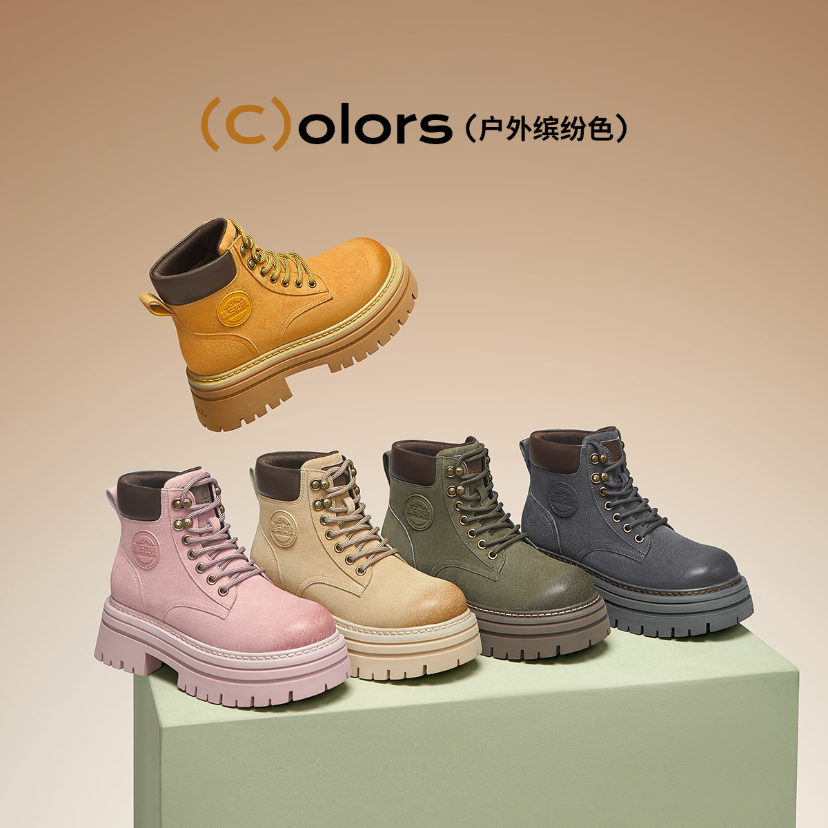骆驼女鞋2025秋季新款登山鞋骆驼马丁靴时装靴大黄靴厚底短靴子