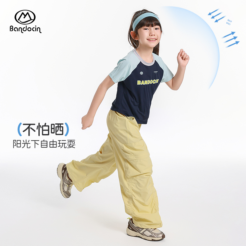 半度闲女童运动防晒短袖t恤洋气薄款2025新款儿童夏装凉感上衣潮T