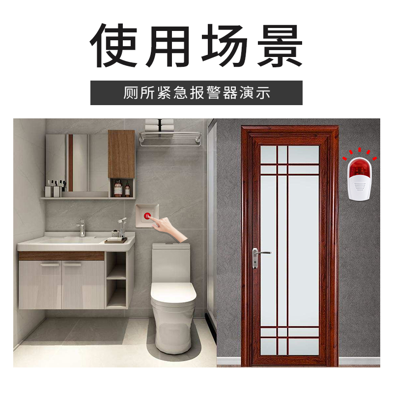 无线残卫报警器公共厕所防水紧急按钮老人呼叫器残疾人卫生间声光告警无需布线远距离大音量一键求助报警系统