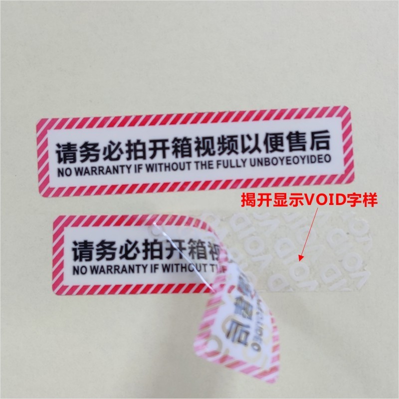 请务必拍开箱视频以便售后封口贴一次性防撕标签乳白void不干胶B
