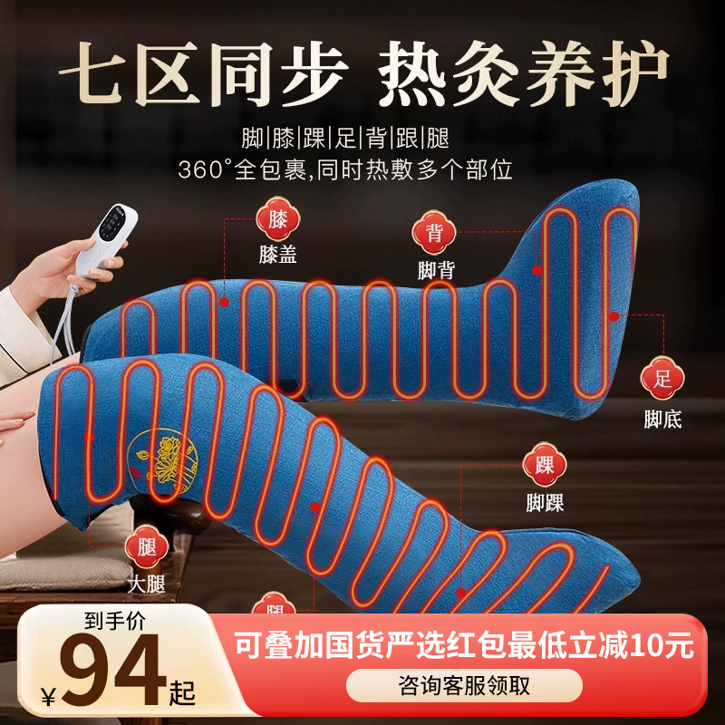电加热艾灸护膝护腿套保暖老寒腿理疗艾绒热敷膝盖长筒靴老人电热