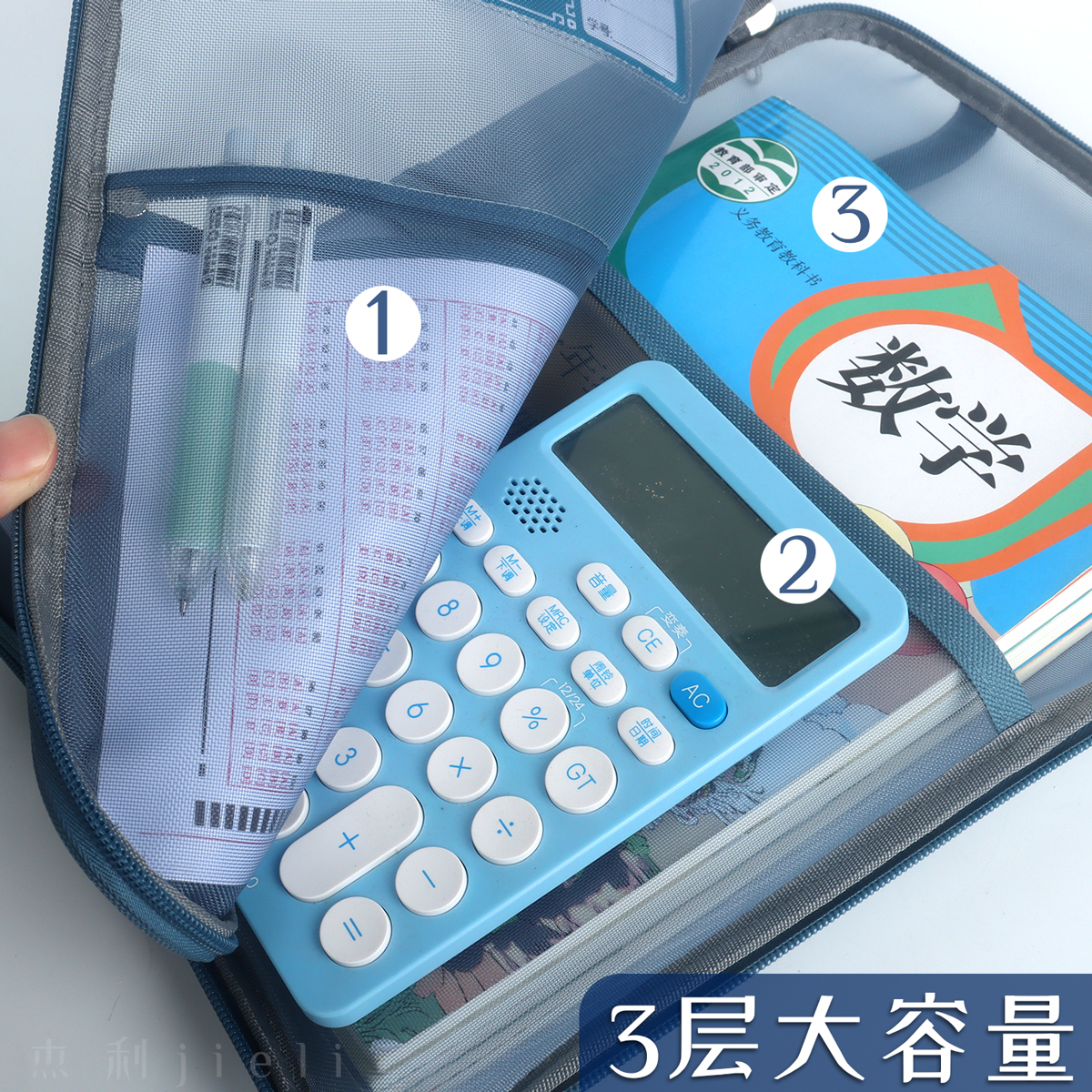 杰利学科科目分类文件袋拉链式手提大容量小学生用资料书本课本三层分科书袋试卷收纳袋学生装卷子袋子定制