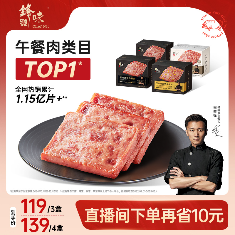 锋味派官方黑猪午餐肉罐头三明治专用即食火腿午餐肉单独包装早餐