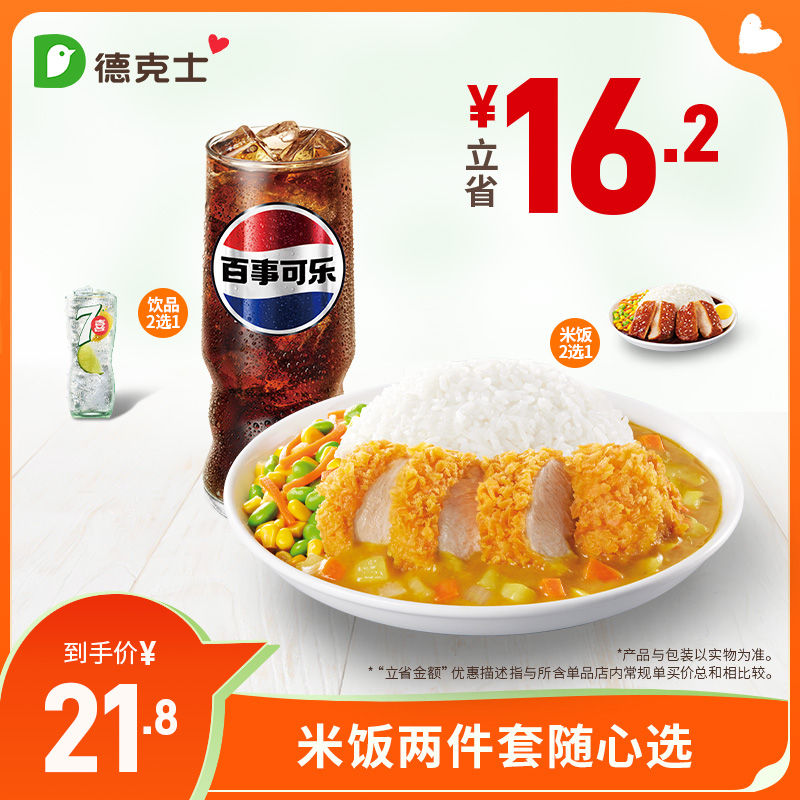 德克士 米饭两件套随心选 单次券s-ms【勿填陌生号码防诈骗】