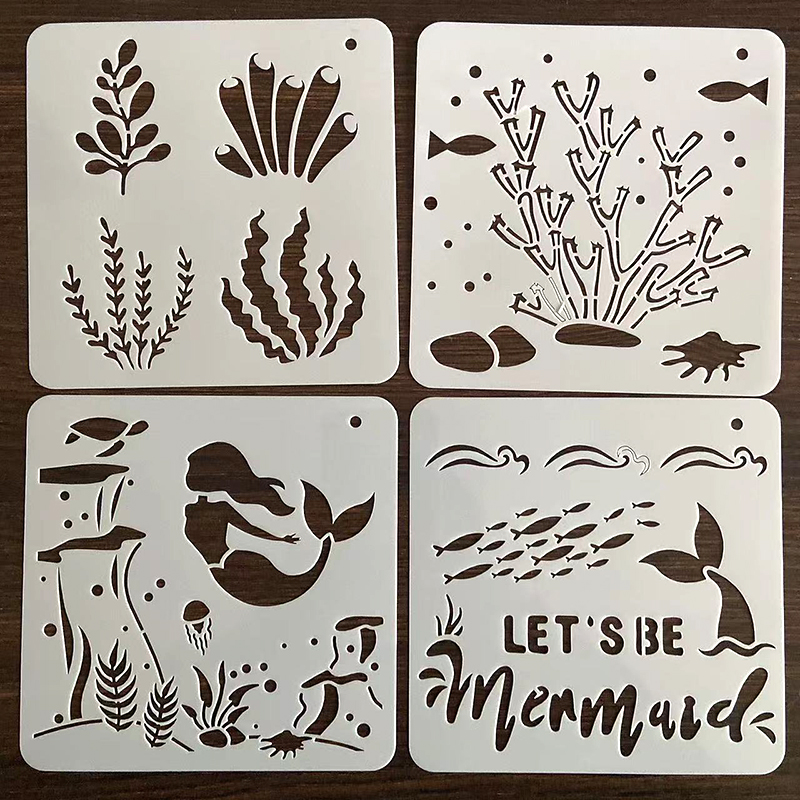 海洋生物系列镂空绘画模板手抄报学生儿童画画diy手账画板花边尺