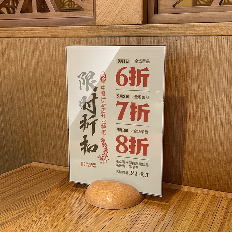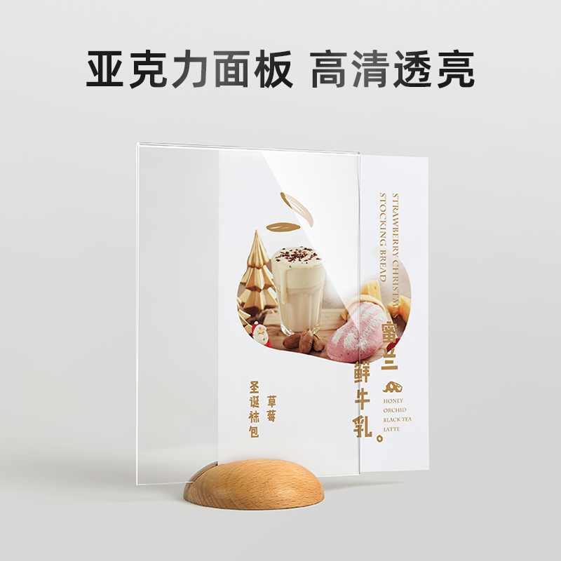 亚克力台卡立牌木质台卡实木桌牌a4展示牌菜单台牌榉木台签a5价格牌桌面会员充值广告牌餐桌点餐价目表