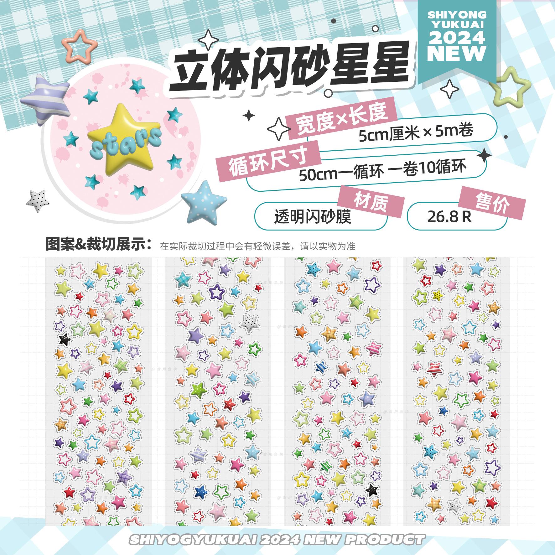 食用鱼块合集循环分装 立体闪砂 星星古早便利贴小鼻嘎彩色时间轴