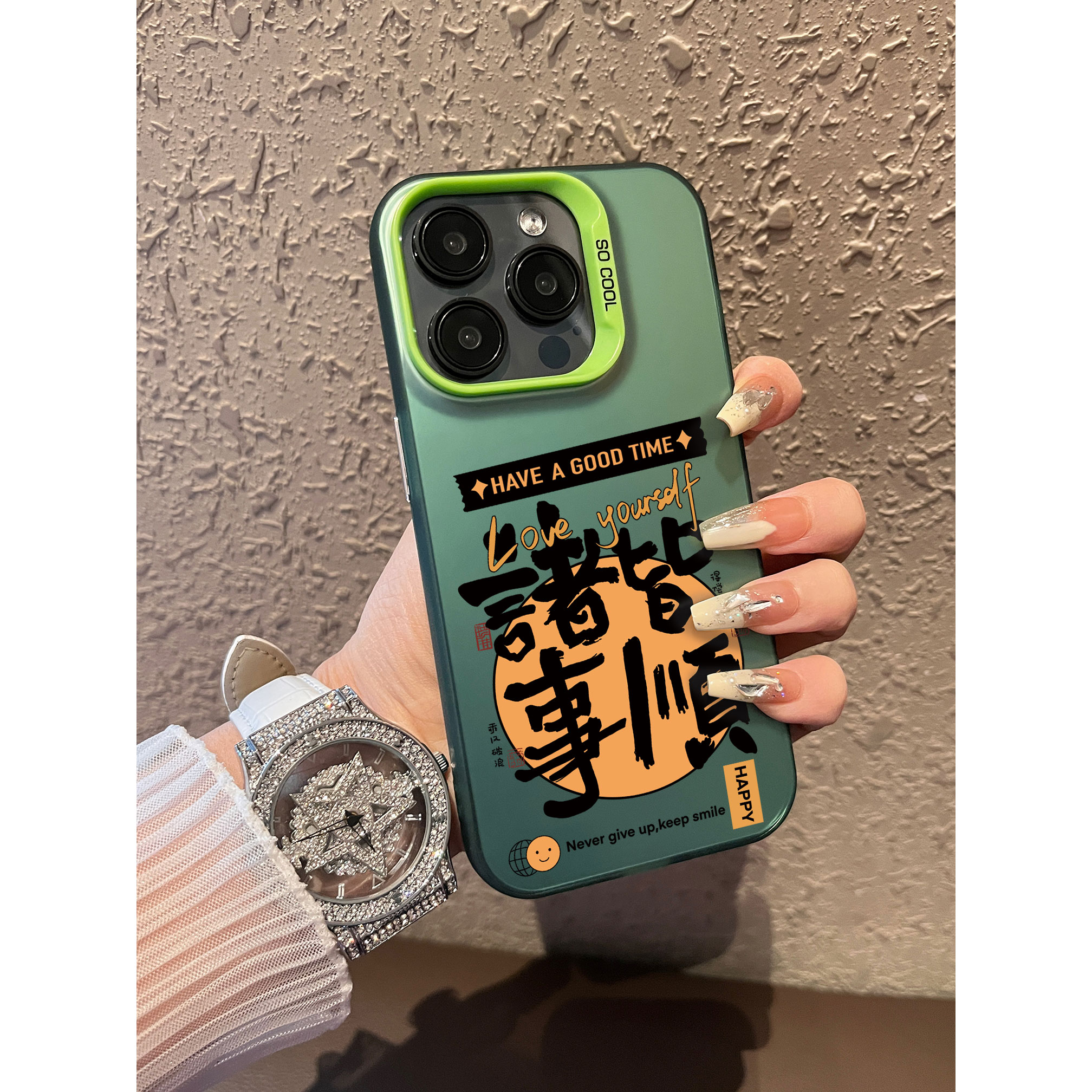 适用于苹果17promax手机壳诸事皆顺16e支架高级感15苹果13彩银12套新品xr防摔xs男女款17air保护套iPhone14