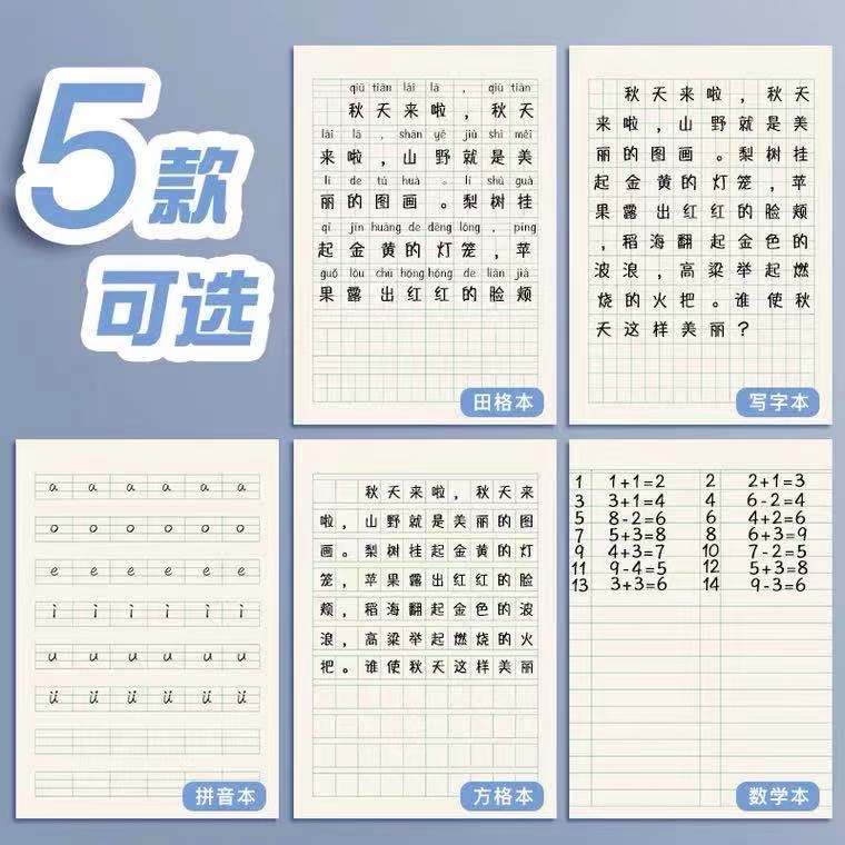 厚款30张江苏小学生写字簿作业本子田格数学方格拼音12年级幼儿园