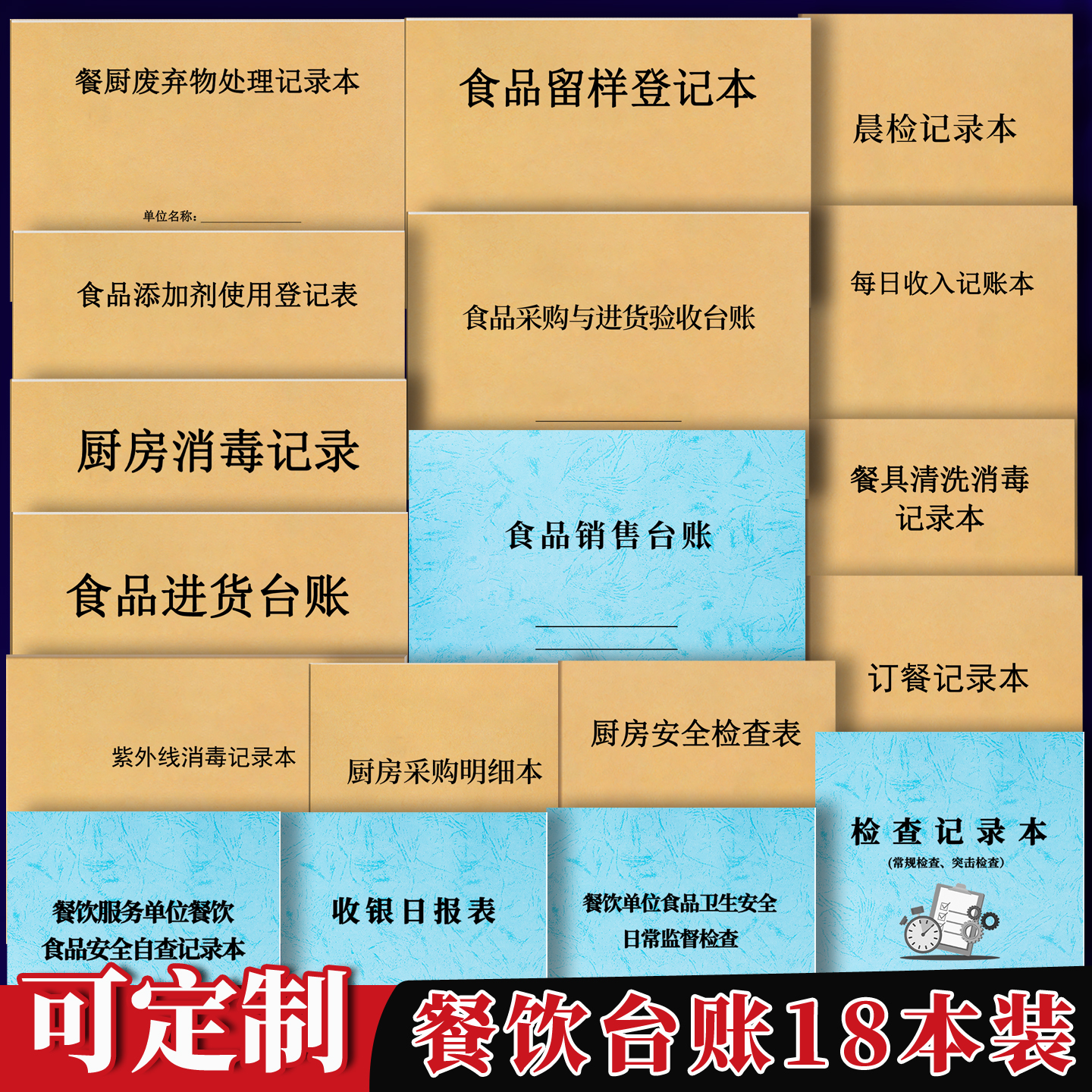 餐饮台账本食堂餐饮店饭店食品进货管理台账明细餐具幼儿消毒食品留样添加剂垃圾处理记录本收入进货登记本