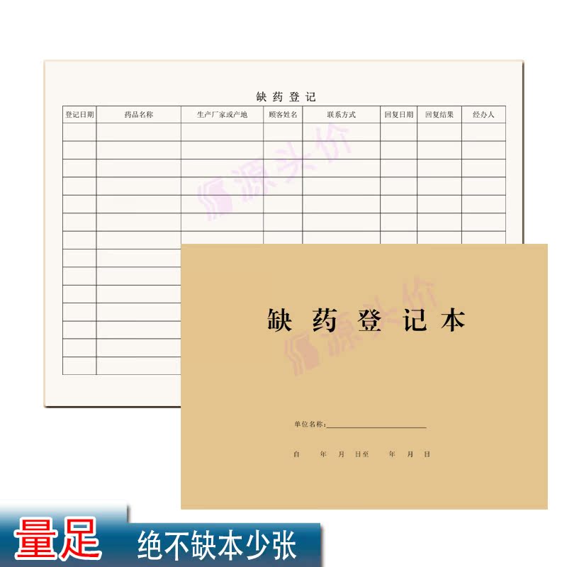 缺药登记本药物缺少数量名称客户回复结果经办情况记录本本册定做