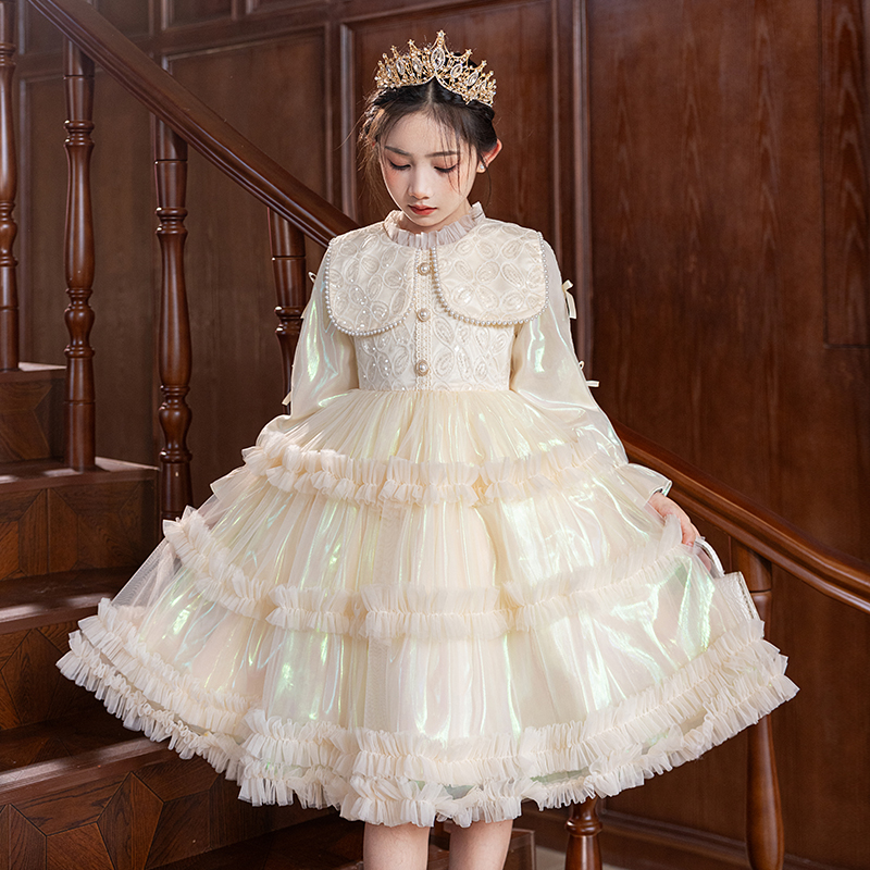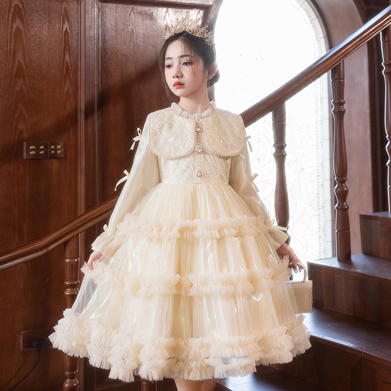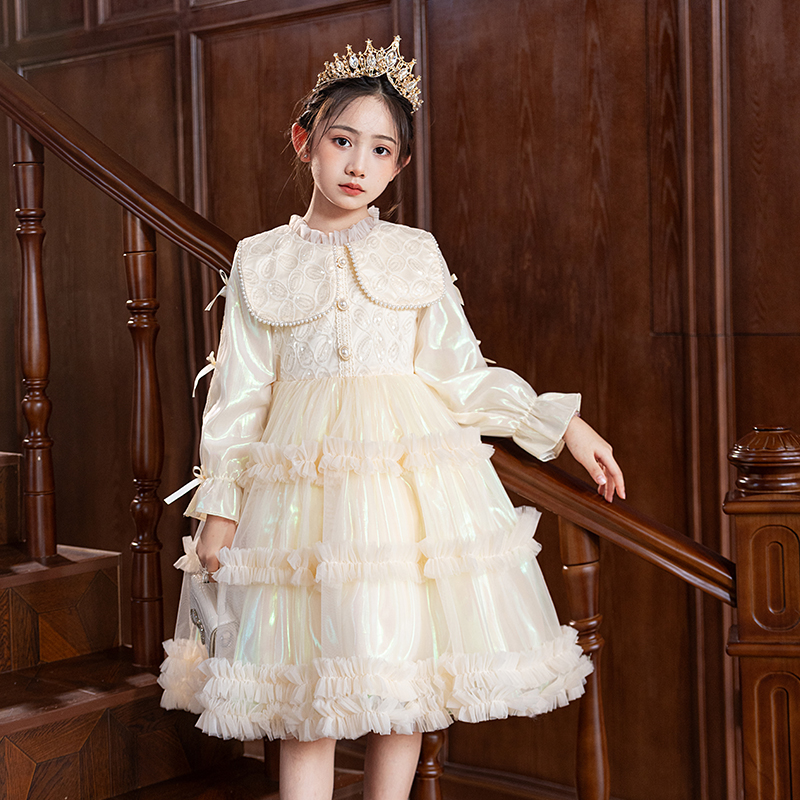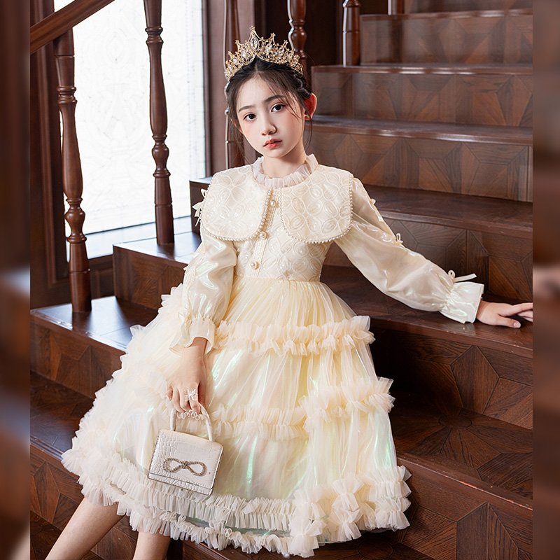 女童绝美公主裙秋冬儿童富家千金感连衣裙小女孩花童婚礼生日礼服