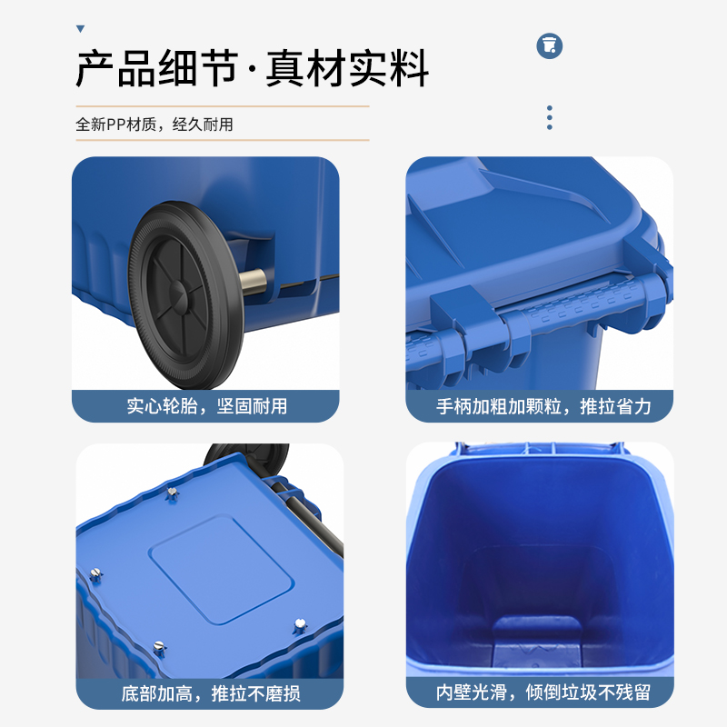 大号户外环卫垃圾桶挂车分类大容量商用带轮带盖240L耐用厨余实用