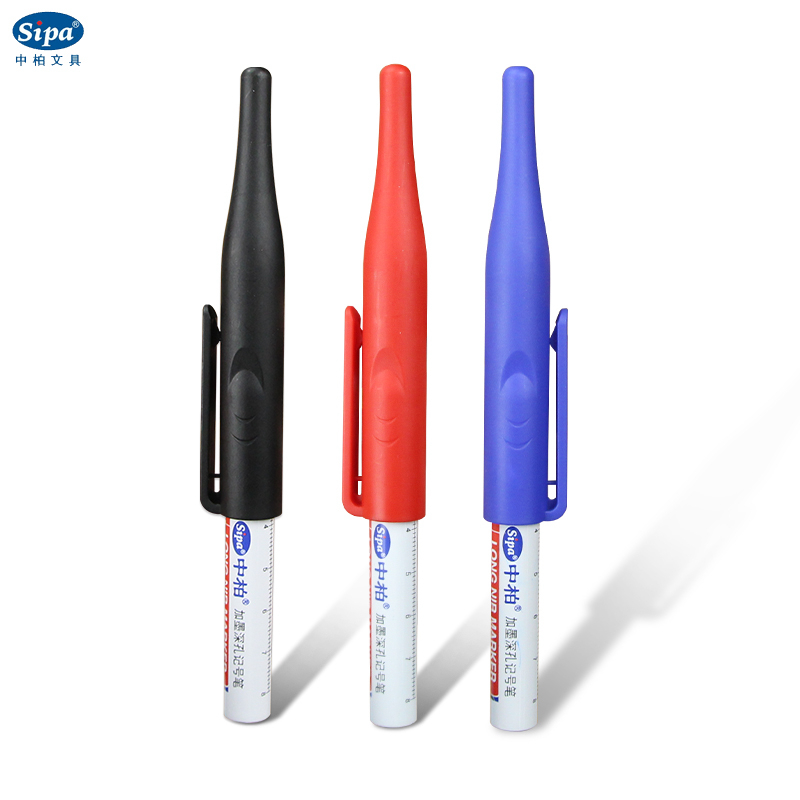 中柏长头记号笔打孔辅助笔不易褪色可加墨深孔作业笔加长瓷砖记号五金加工笔划重点防水工地用特殊油性记号笔