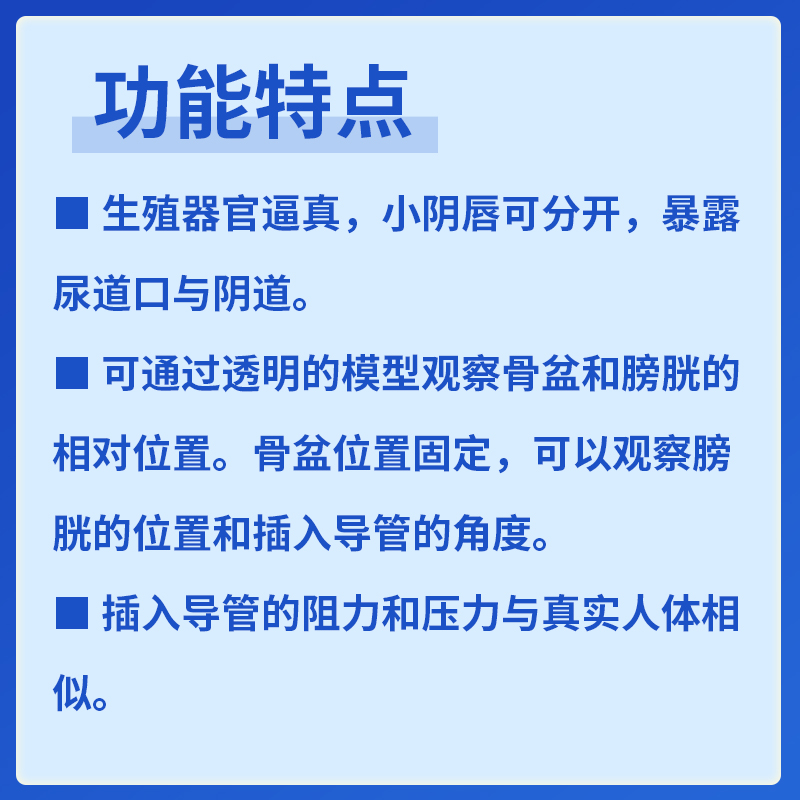 透明女性导尿模型小阴唇可分离尿道口暴露 骨盆膀胱定位真实阻力感气囊膨胀动态双腔三腔管尿液验证医学教具