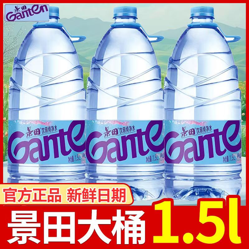 景田纯净水1.5L*12大瓶装整件饮用水会议接待家庭用非矿泉水批发