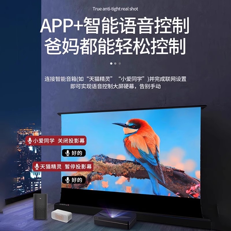 【三色激光专用】电动地升幕布投影家用菲涅尔抗光幕布适用极米坚果当贝4K电动拉线自动升降投影仪地拉投影布