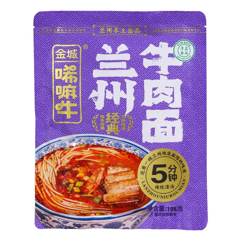 畅销装唏嘛牛兰州牛肉面速食清真家庭自煮2袋起非油炸不带酱肉包