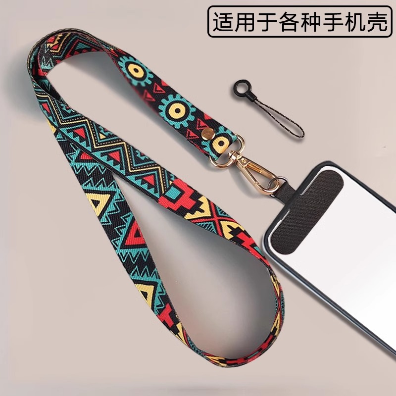 高端复古图腾手机挂绳挂脖吊绳子伸缩可调节手机壳背带绳斜挎挂链
