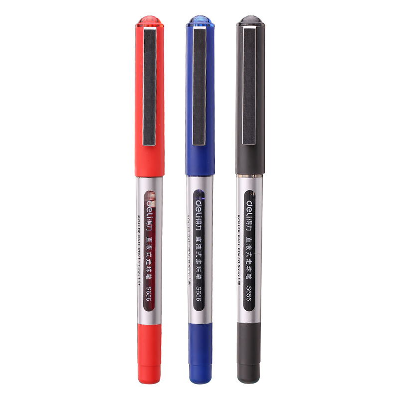 得力直液式走珠笔s656中性笔黑红0.5mm学生用考试办公签字水笔