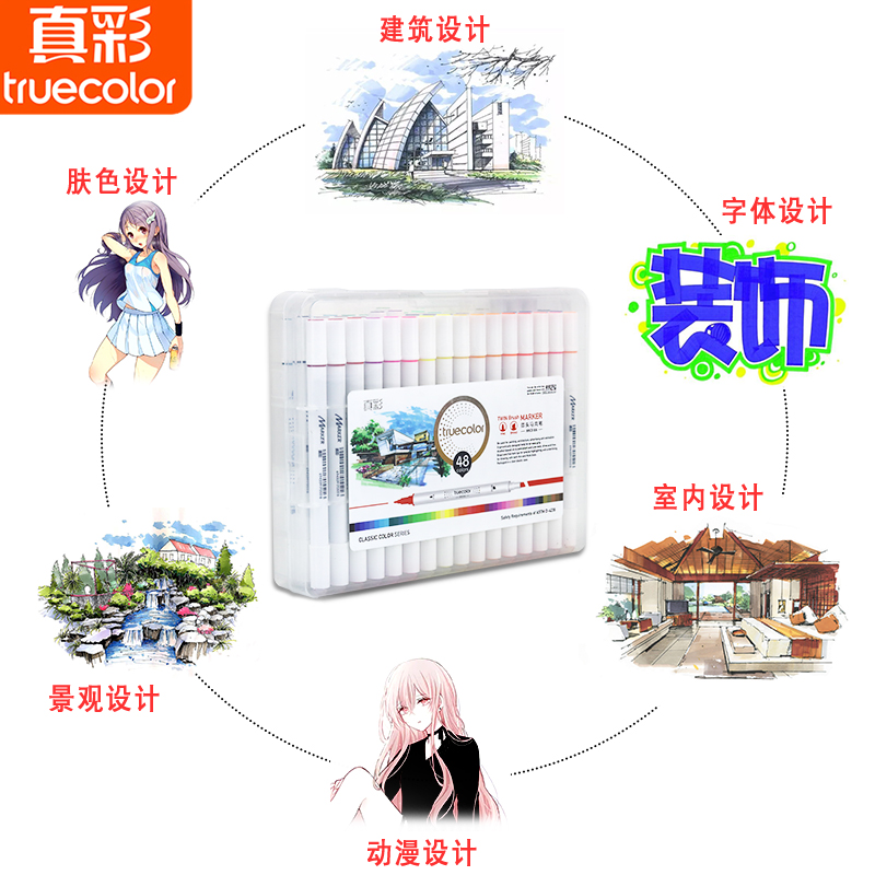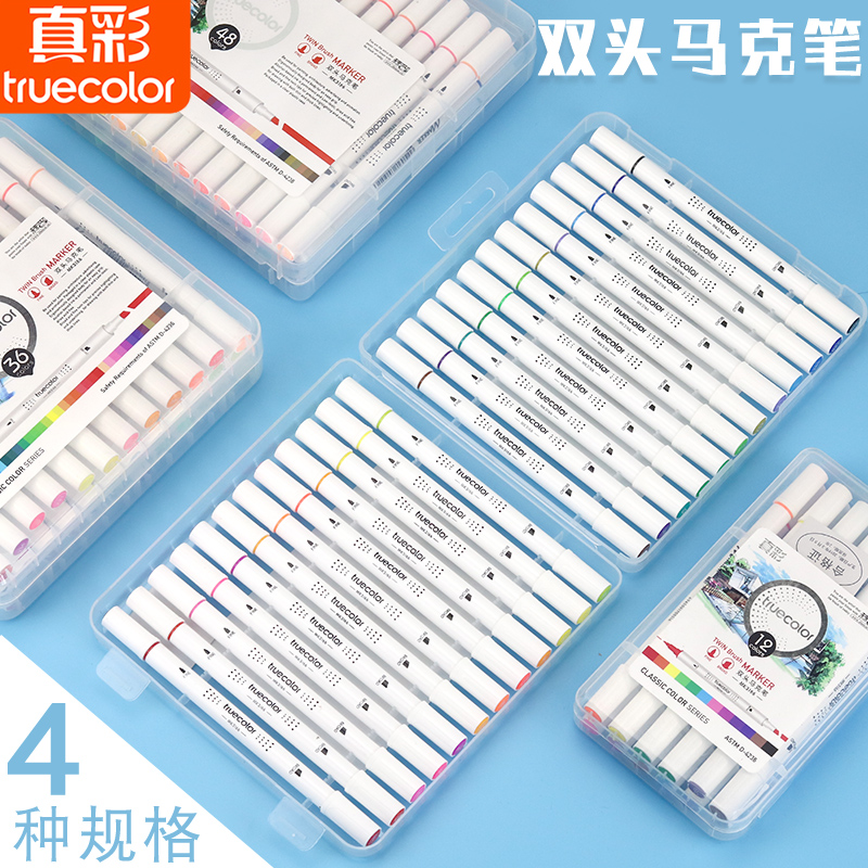 真彩马克笔48色套装学生初学者动漫专用绘画笔36色双头酒精油性彩色马克笔全套24色小学生用手绘漫画笔批发