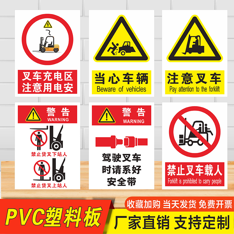 当心叉车铲车警示牌贴纸工厂仓库当心叉车禁止载人禁止通行避让充电区当心叉车下面严禁站人安全标识牌警示牌
