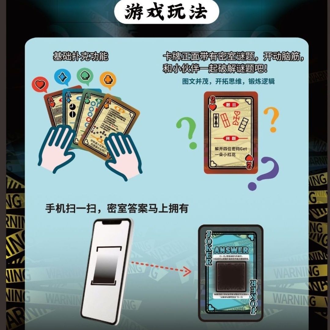 解密密室逃脱扑克卡牌多种玩法正面问题反面答案聚会趣味玩耍