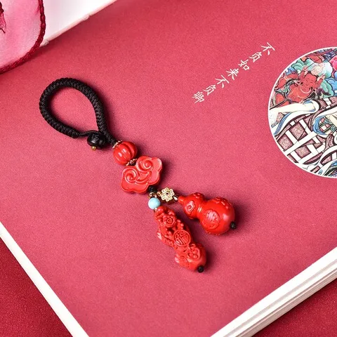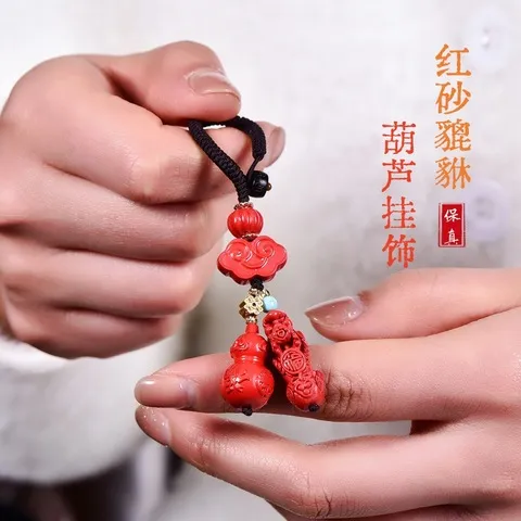 红砂钥匙扣朱砂吊坠高含量貔貅原创设计包挂葫芦挂饰纳福保真招财