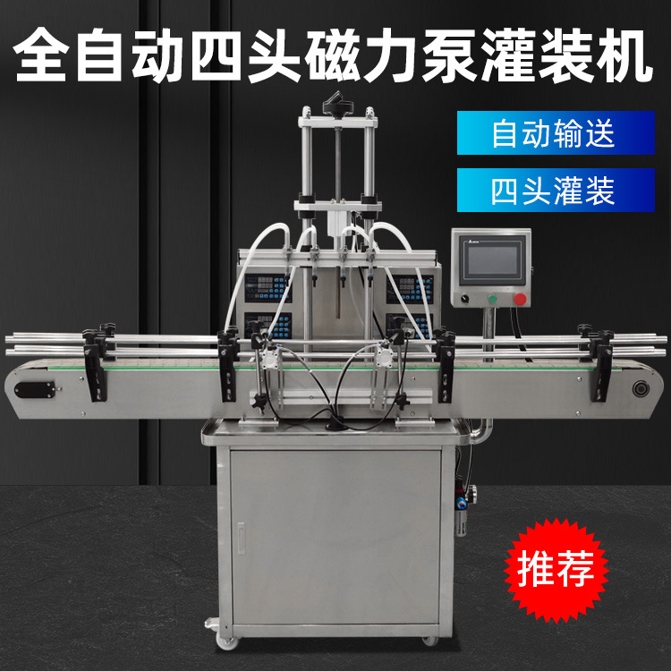 全自动四头磁力泵灌装机香水白酒精油烟油自动数控液体灌装生产线