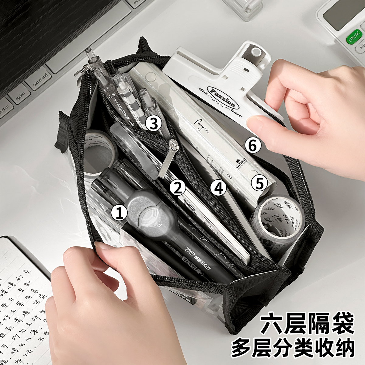 三年二班前窗透明六层笔袋2025款文具盒学生用高颜值简约铅笔盒K