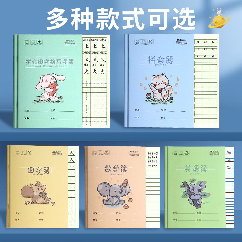 晨光田字本拼音本英语本数学本小学生专用作业本田字格本36K全国统一标准一二年级生字练习本幼儿园学习写字