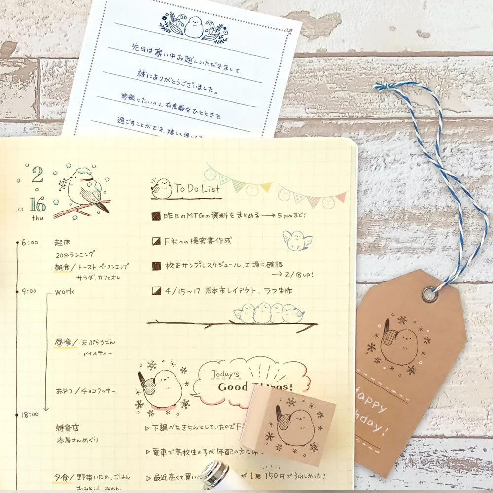 Beverly木质印章银喉长尾山雀印章套装12枚可爱手帐素材收纳盒