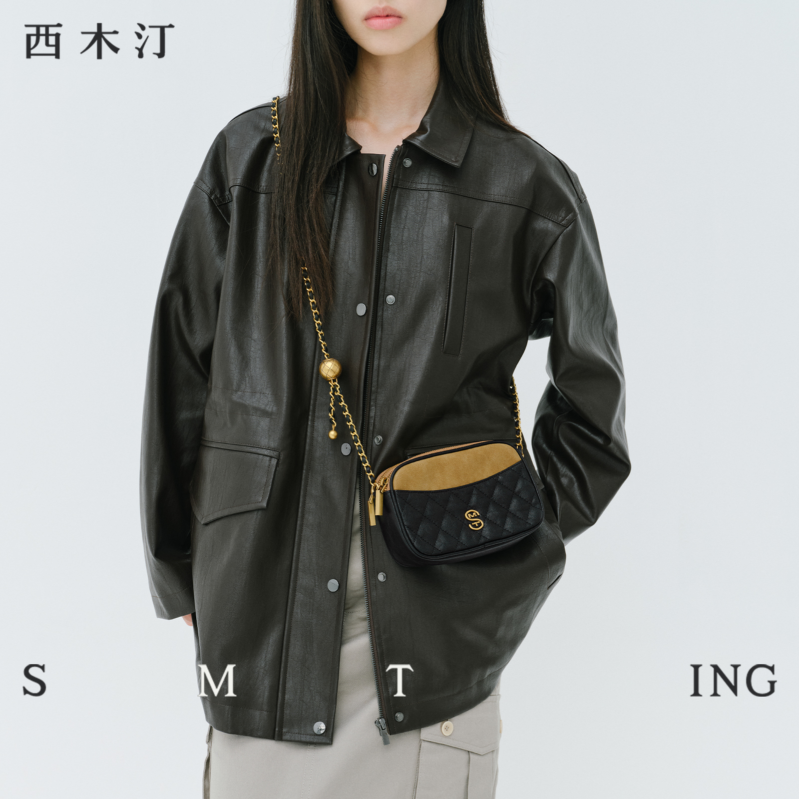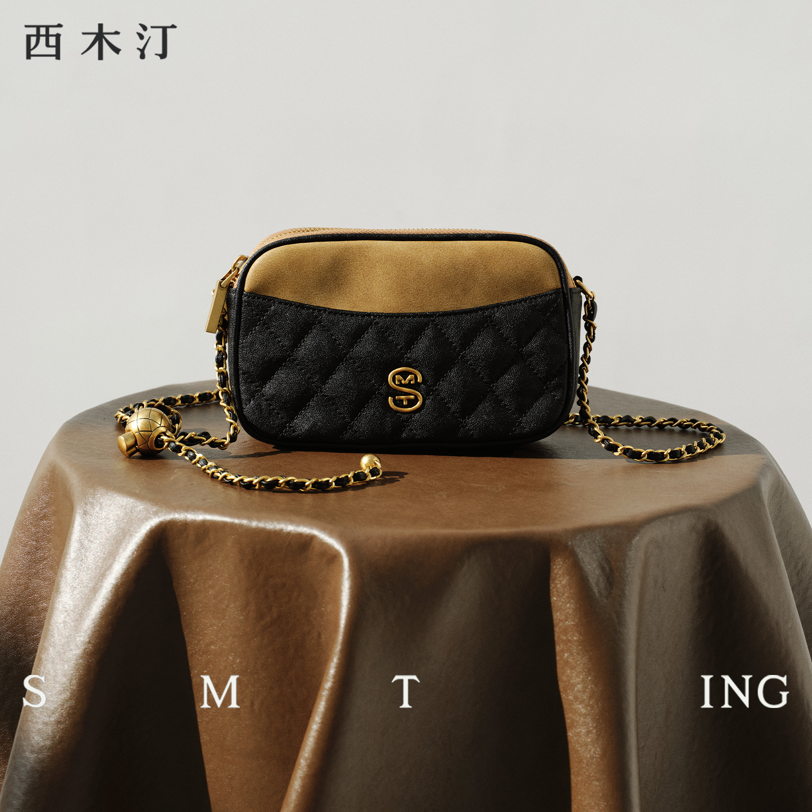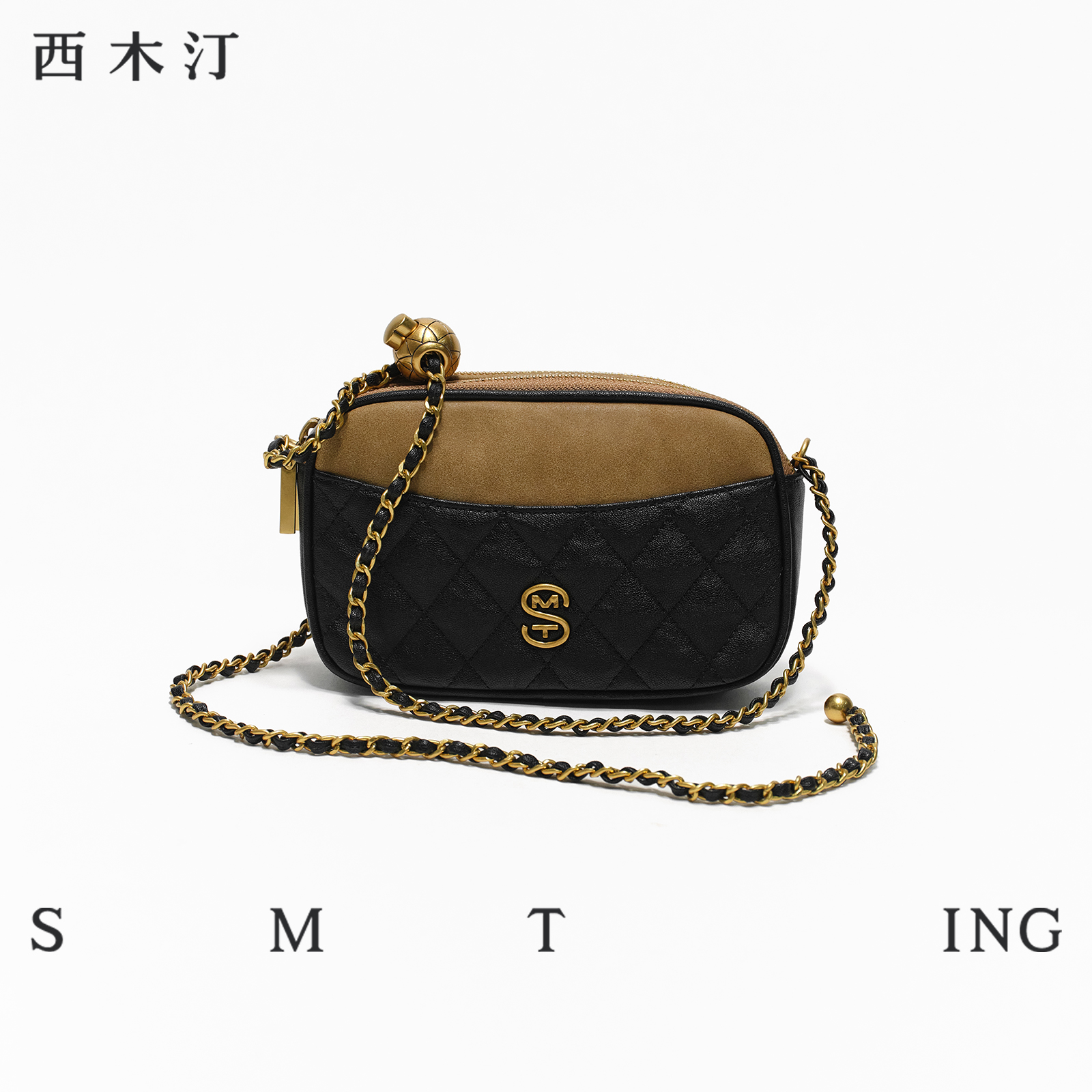 SATCHI/沙驰菱格链条包牛皮小方包时髦单肩斜挎包2025轻奢小包包