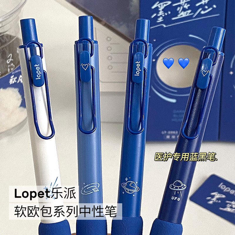 lopet乐派蓝黑色中性笔墨蓝色医护处方笔墨兰护士按动签字笔学生医用蓝黑笔笔芯医生用按动式水笔专用按压式