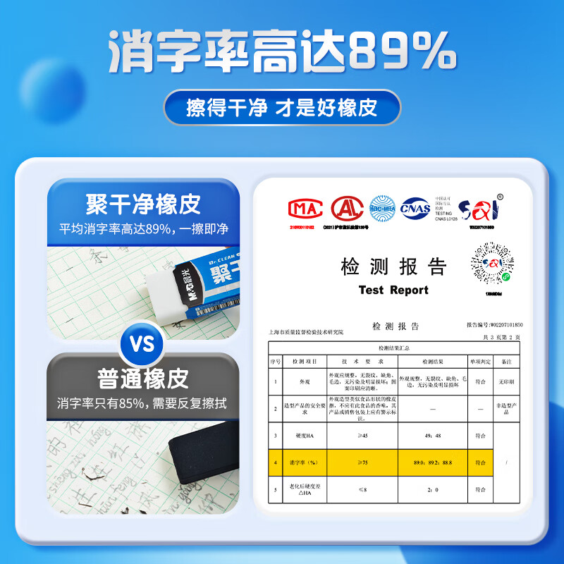 晨光聚干净橡皮小学生专用大号无邻苯小白橡皮擦干净不易留痕少屑胶擦中学生用绘图美术HB/2B/4B铅笔公考橡皮