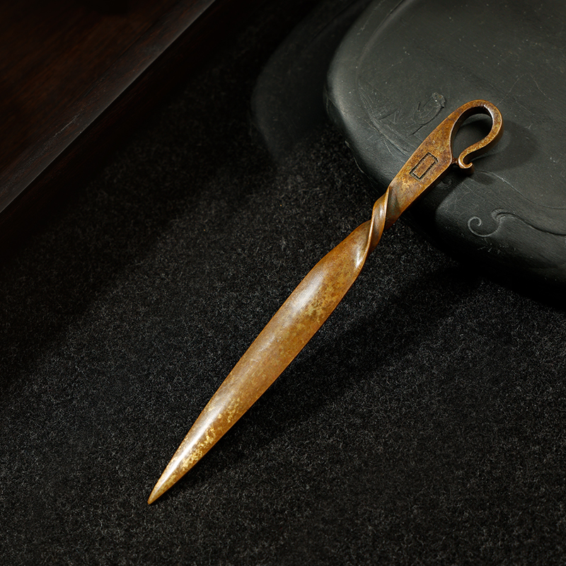 青铜器柳叶茶刀裁纸刀 复古画宣纸切纸刀多功能手工裁宣纸刀摆件