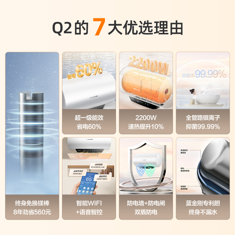 [政府补贴]万和电热水器家用洗澡卫生间储水式60L出租一级节能Q2