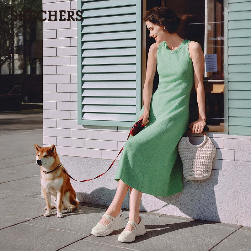 闪穿鞋|斯凯奇女鞋宽脚一脚蹬单鞋玛丽珍芭蕾鞋2025夏季新款厚底