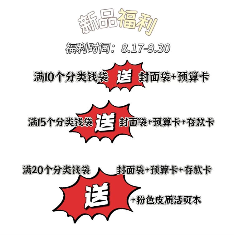 【饼干原创】A6粉珠光爱心小熊分类预算袋 现金收纳袋