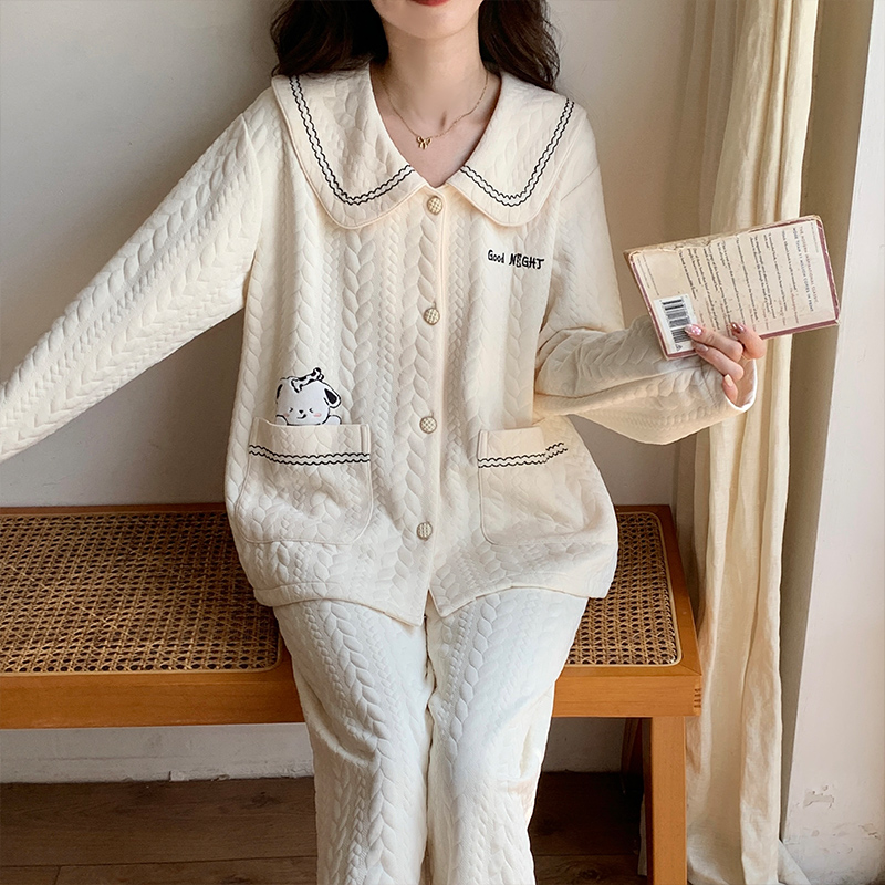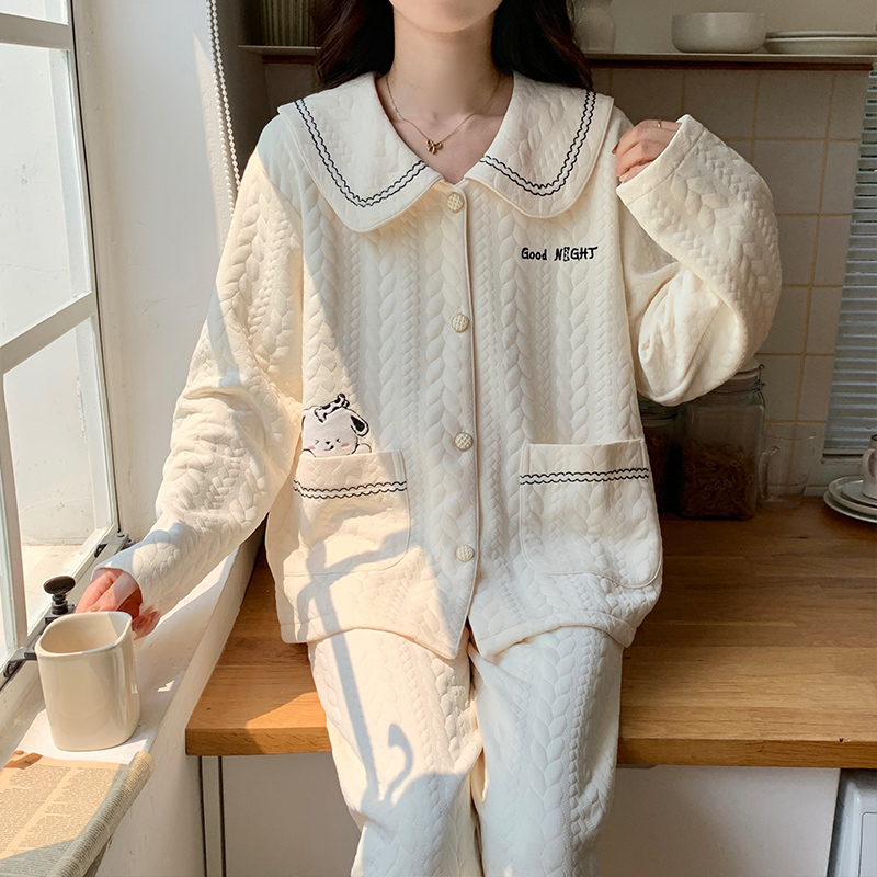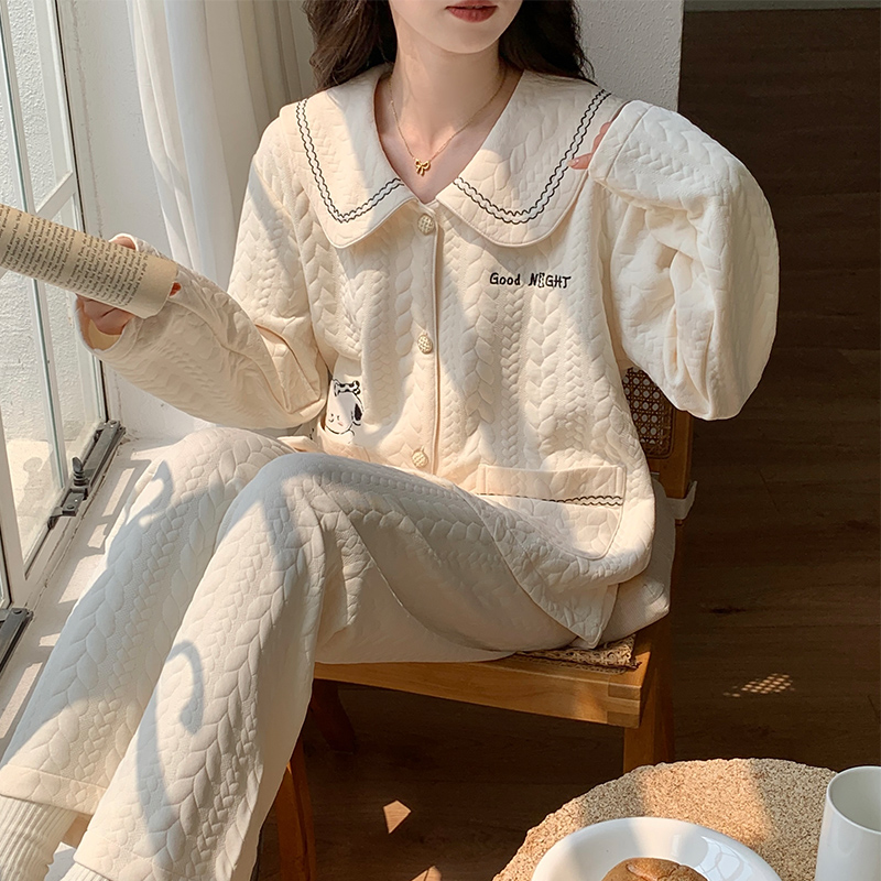 2025新款睡衣女款秋冬保暖空气棉夹层加厚女士春秋长袖家居服套装