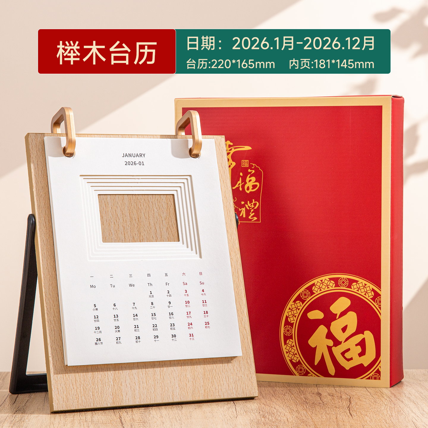 2026年新款实木台历创意镂空设计日历办公桌面精美高端摆件年历日常自律打卡记事计划本月历公司来图定制logo