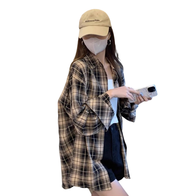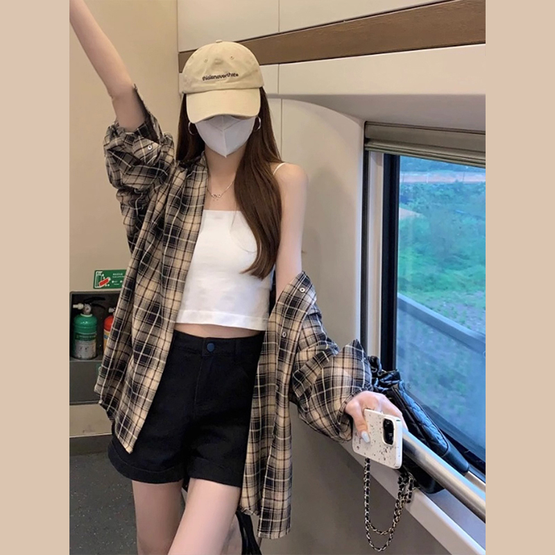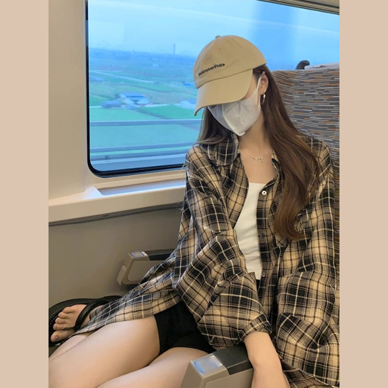 2024年新款法式格子衬衫外套女早秋季高级感衬衣薄款长袖上衣条纹