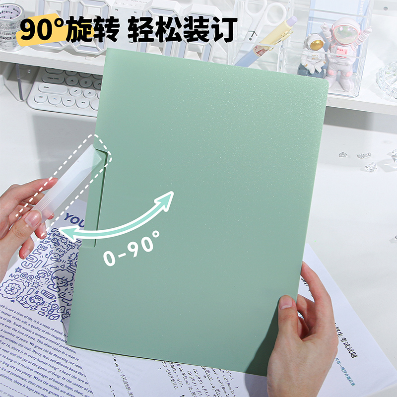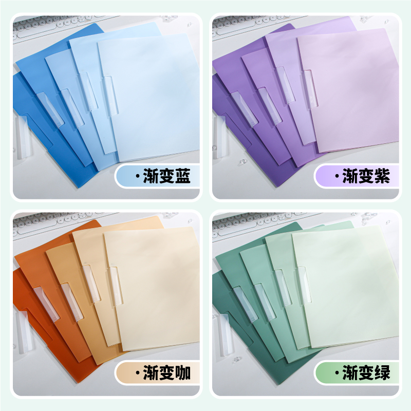 渐变色A4旋转抽杆夹高颜值拉杆文件夹侧开扣式PP资料夹学生用试卷