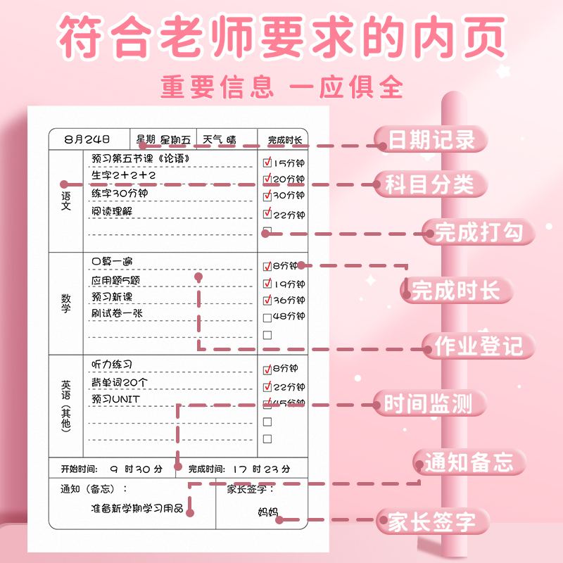 作业登记本加厚高颜值小学生专用一年级用记课堂抄作业本记录本可爱回家抄写家校联系家庭初中生记作业小本子