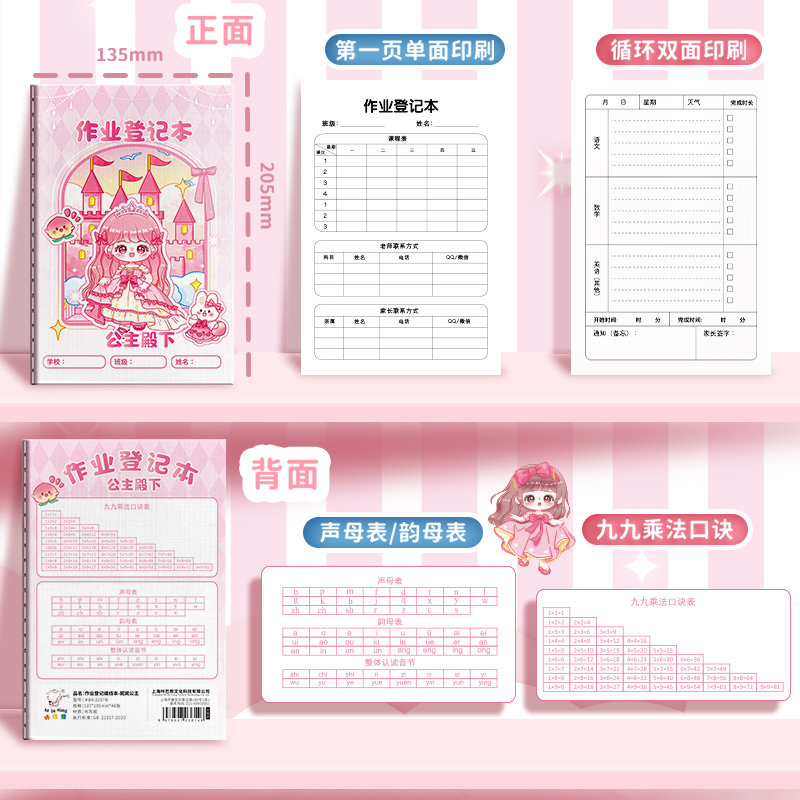 作业登记小学生专用可爱高颜值一年级用加厚记课堂抄作业本记录本回家抄写家校联系家庭初中生记作业小本子