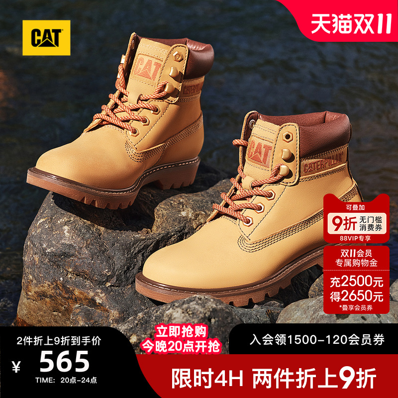CAT卡特25秋季新品女士户外复古牛皮高帮轻便大黄靴女靴工装靴