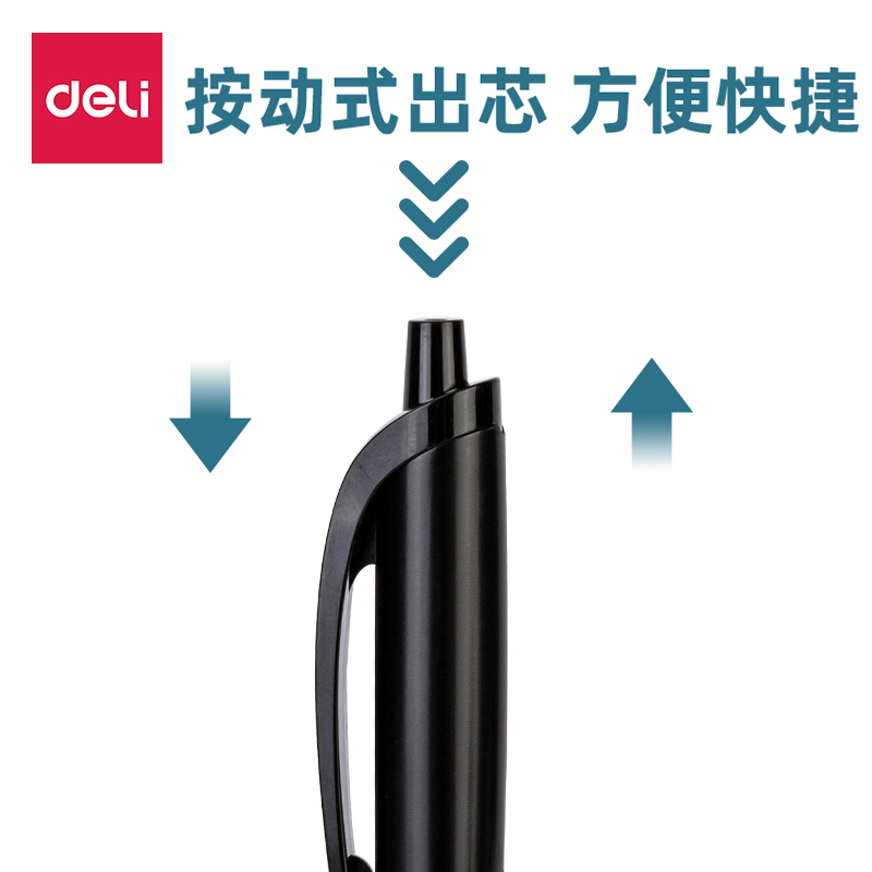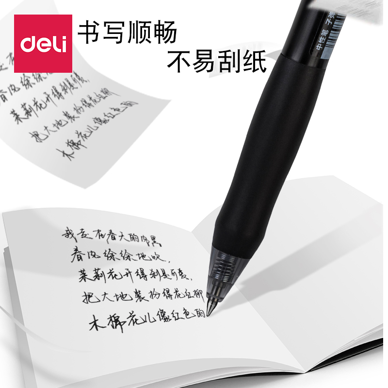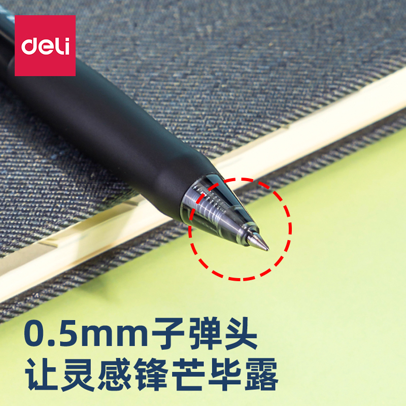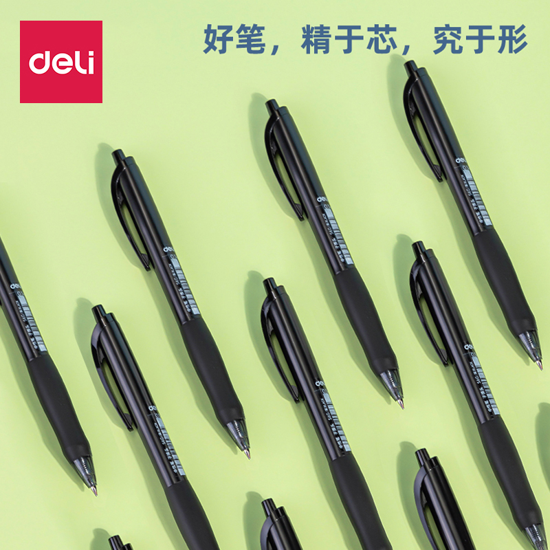 得力按动中性笔臻顺滑黑色红色0.5mm子弹头按压式摁动水性笔签字笔商务办公学生刷题老师批改用文具学习用品