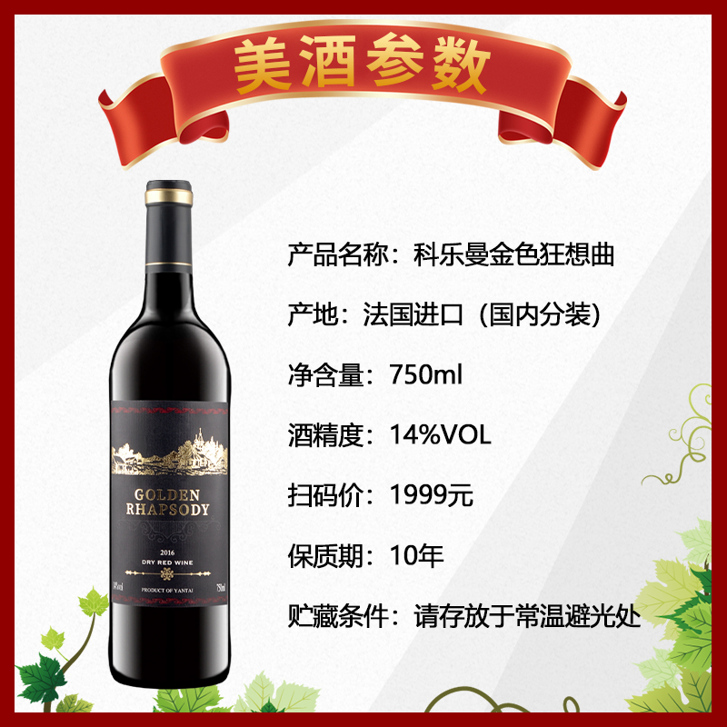 法国进口红酒赤霞珠14度红酒多规格狂想曲干红葡萄酒过节聚会送礼