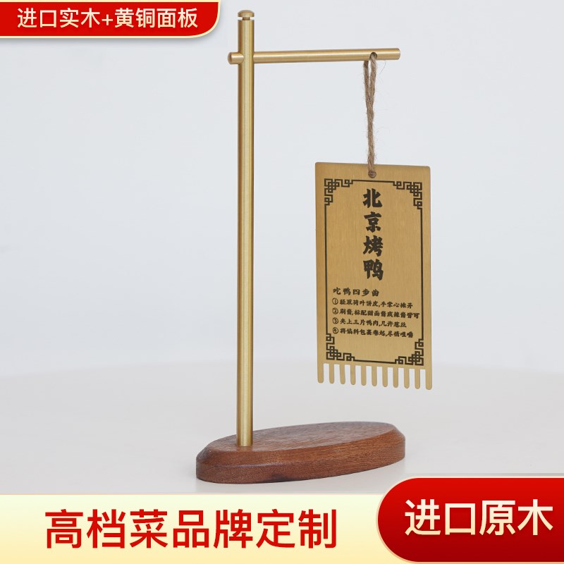 中式黄铜菜牌菜品介绍标签牌吃法步骤桌牌定制北京烤鸭特色菜台签