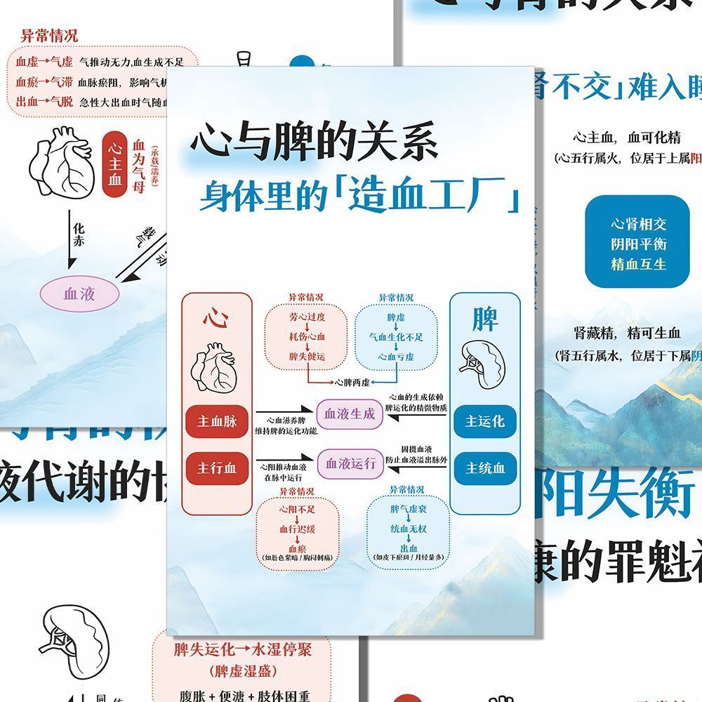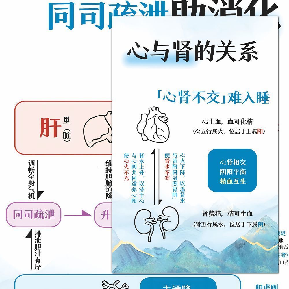 大张器官间的关联贴画中医健康自诊养生养心养脾胃肝肾同源贴纸